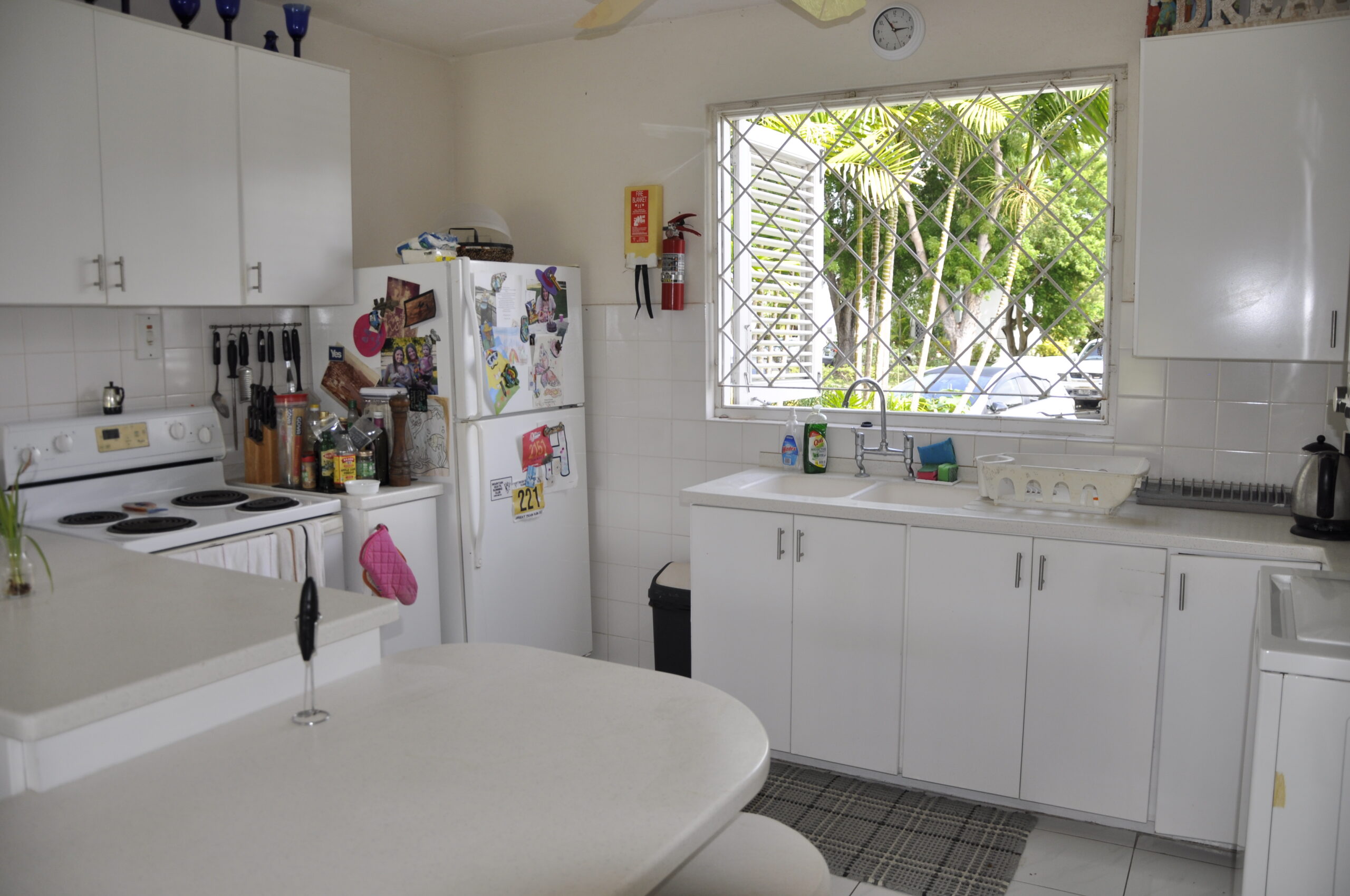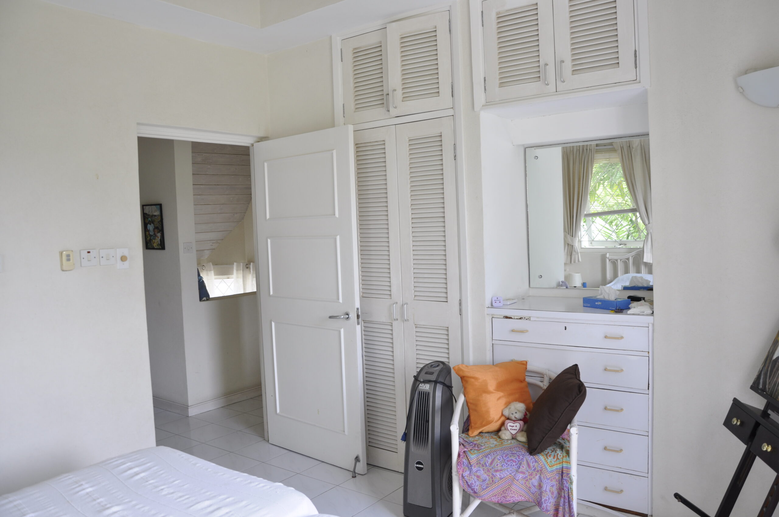 Upstairs, there are three bedrooms. The master bedroom has an ensuite bathroom, ample built in closets and access to a balcony. The other 2 bedrooms also have great cupboard space and share a bathroom. All bedrooms have a/c and high ceilings.