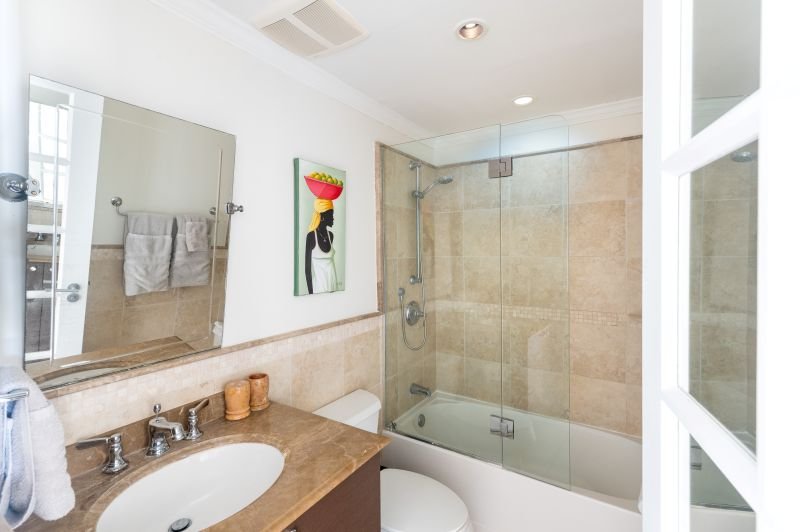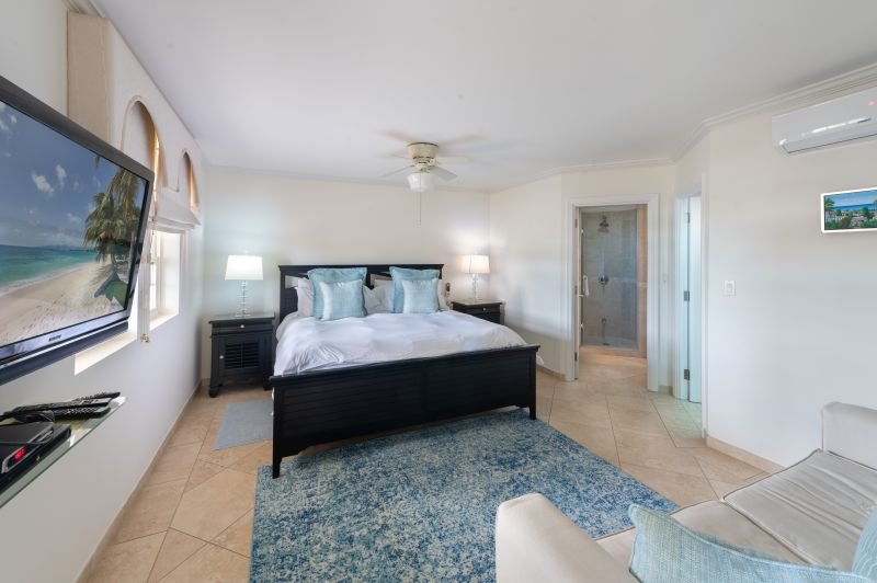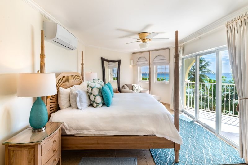 This South coast apartment has approximately 1,900 square feet of beachfront luxury and is located on the third floor of the condominium building. The open plan living, dining and kitchen area, leads on to the balcony which overlooks the pools, beach and ocean beyond. The en-suite master bedroom also has direct access to the balcony, and is angled is such a way that you can lay on your bed and look straight out to the ocean view. Bedroom 2 also has an en-suite bathroom, whilst Bedroom 3 is next door to the hallway bathroom.