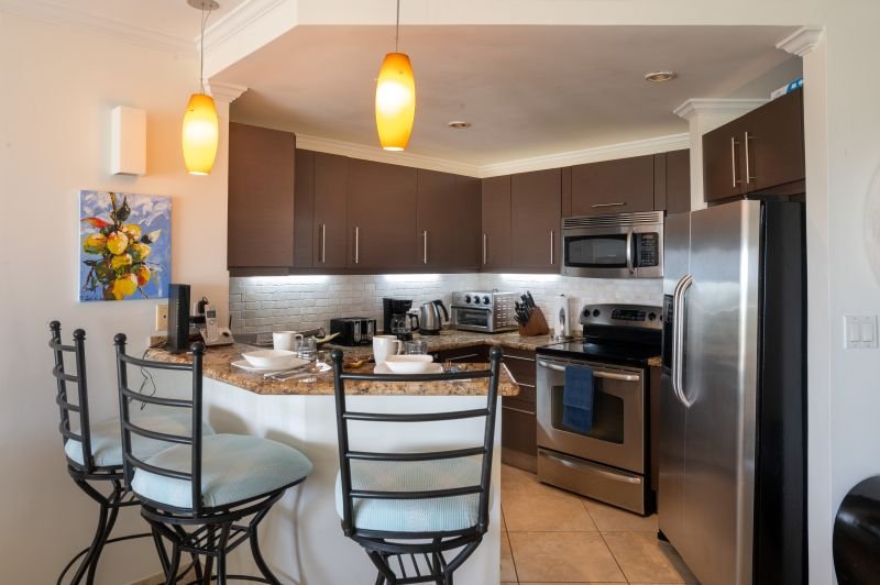 Sapphire Beach 303 offers luxurious finishes including granite counter tops and porcelain floor tiles, a fully equipped Italian designed kitchen with appliances, a laundry room with washer/dryer, air-conditioning and ceiling fans in all rooms. In addition the view of the beach and the ocean from this unit at Sapphire Beach is incredible.